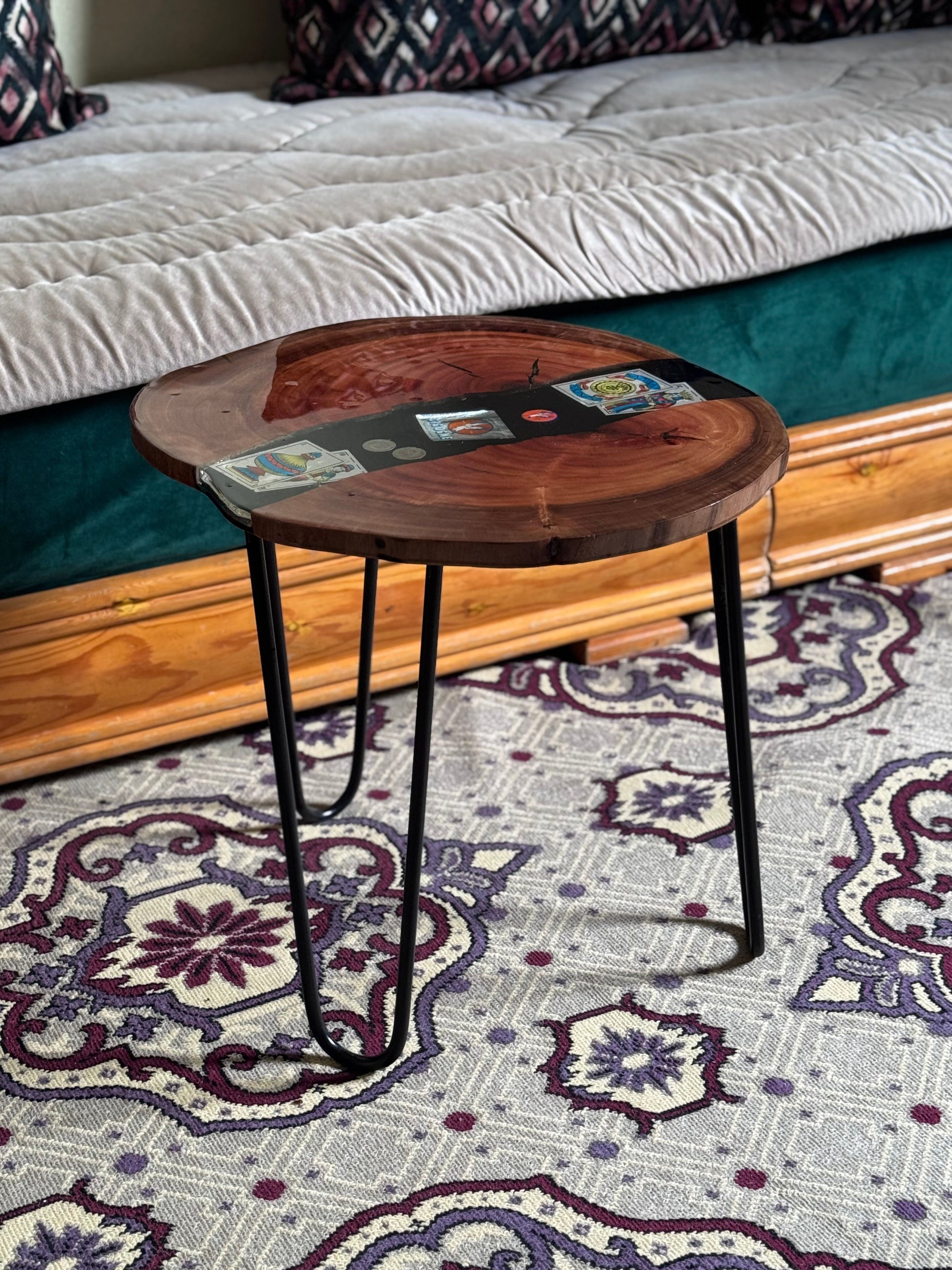 طاولة مصنوعة من الخشب ولايبوكسي